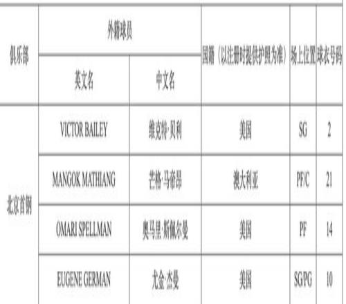 贝利此前已经抵达北京男篮报到,如今CBA官方宣布北京男篮已经完成贝利的注册,他将与杰曼、斯佩尔曼、马帝昂组成四外援阵容。