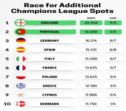 事实上,葡超本季迄今在欧战表现突出,在参加欧冠、欧联、欧协三大杯的5支球队中,仅有圣克拉拉体育在欧协杯这个是附加赛“阵亡”,两支欧冠球队和欧联球队均以前8名直接晋级淘汰赛。总体战绩上,葡超本季迄今拿到16.6个欧战积分,仅次于目前9队全部存活的英超,暂时反超德甲。