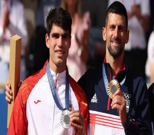 在2023年温网的草地上,20岁的少年执拍截断了德约科维奇年度全满贯的神话;次年再度于此终结了对方25冠的旅途。而37岁的GOAT,在2024年巴黎夏日的五环旗下击退阿卡,将那枚独缺的金牌写入史诗。