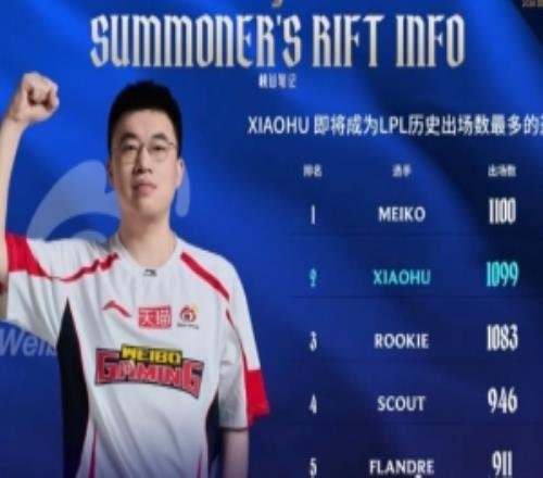体育资讯2月2日报道宣称 仅差一场!xiaohu即将超越Meiko成为LPL出场数最多的选手!