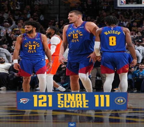 两位MVP候选正面对话,约基奇输了数据也输了比赛;穆雷本场之前刚刚入选生涯第一次全明星,可惜也没有打出此前的全明星表现。