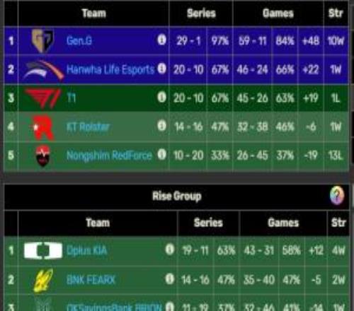 体育资讯10月10日报道宣称 PCS解说为s15的17支队伍进行排名: GEN独一档 T1 HLE BLG TES AL均为A