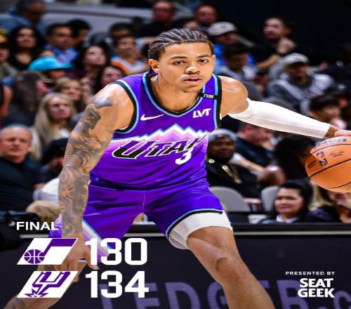 北京时间10月11日,NBA季前赛,马刺134-130爵士(OT)。马刺队文班10投6中22分7板3助攻,大卫-琼斯-加西亚20分,瓦塞尔18分,乌穆德13分,凯尔登11分,尚帕涅10分,哈珀6投4中9分3助攻0失误;爵士