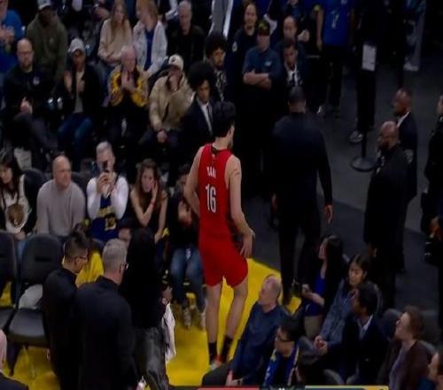 北京时间今日,在NBA常规赛中,波特兰开拓者队在客场对阵金州勇士队。在比赛进行到第四节时,杨瀚森获得出场机会。在一次进攻回合,杨瀚森倒地拼抢,但后脑勺不慎撞到勇士后卫威尔-理