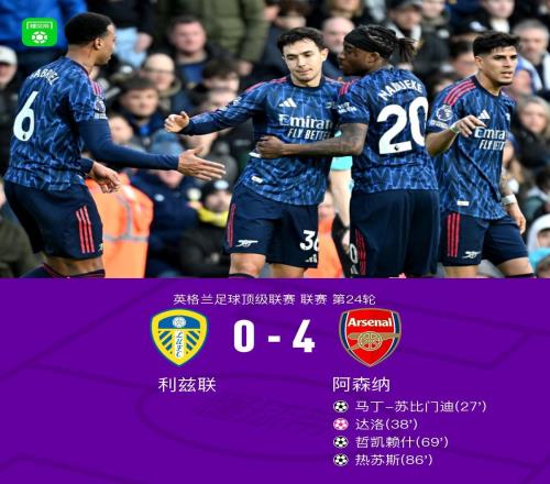 2025-26赛季英超联赛第24轮展开角逐,领头羊阿森纳客战保级球队利兹联。全场比赛战罢,客场作战的阿森纳4-0大胜利兹联。