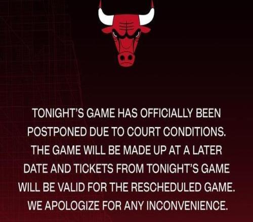 公牛官方:由于场地状况原因对阵热火的比赛已正式延期