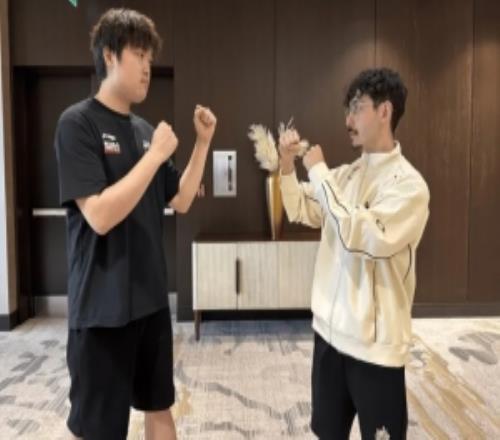 体育资讯10月16日报道宣称 BLG与G2下场比赛相遇,G2晒Bin与BrokenBlade合照: 这周六超级彬大战上单教父。